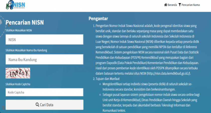- Pengertian Nomor Induk Siswa Nasional adalah, kode pengenal identitas siswa yang bersifat unik, standar dan berlaku sepanjang masa yang dapat membedakan satu siswa dengan siswa lainnya di seluruh sekolah Indonesia dan Sekolah Indonesia di Luar Negeri; Nomor Induk Siswa Nasional (NISN) diberikan kepada setiap peserta didik yang bersekolah di satuan pendidikan yang memiliki NPSN dan terdaftar di Referensi Kemendikbud. Sistem pengelolaan NISN secara nasional oleh Pusat Data dan Statistik Pendidikan dan Kebudayaan (PDSPK) Kemendikbud yang merupakan bagian dari program Dapodik (Data Pokok Pendidikan) Kementerian Pendidikan dan Kebudayaan. Hasil dari proses pemberian kode identifikasi oleh PDSPK ditampilkan secara terbuka dalam batasan tertentu melalui situs NISN (http://nisn.data.kemdikbud.go.id./).